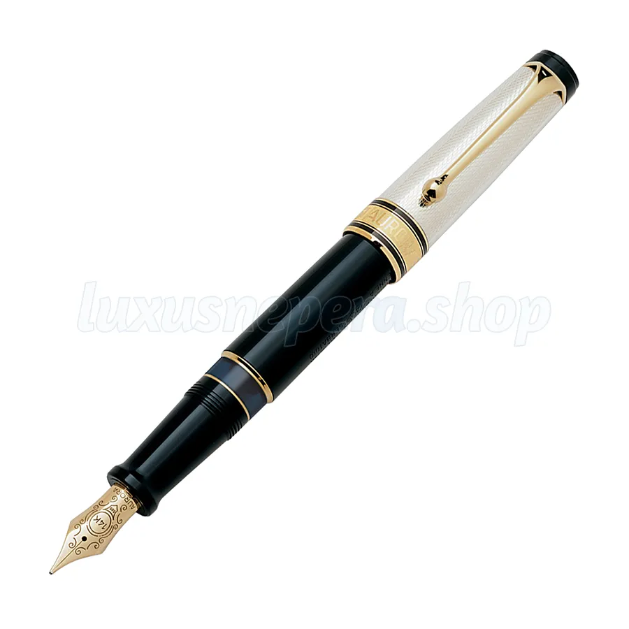 Fountain pen with 14kt. solid gold nib. Cap in solid 925 ‰ sterling silver, barley guilloché and barrel in black resin. Gold trims.