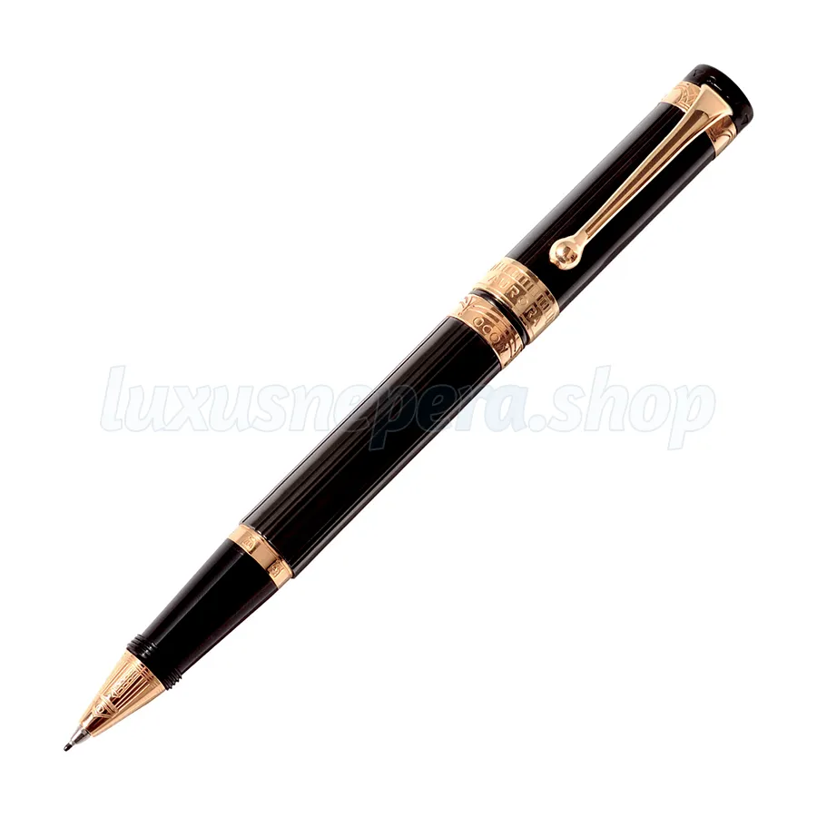 Roller with cap and barrel in black lacquer, rose gold trims.