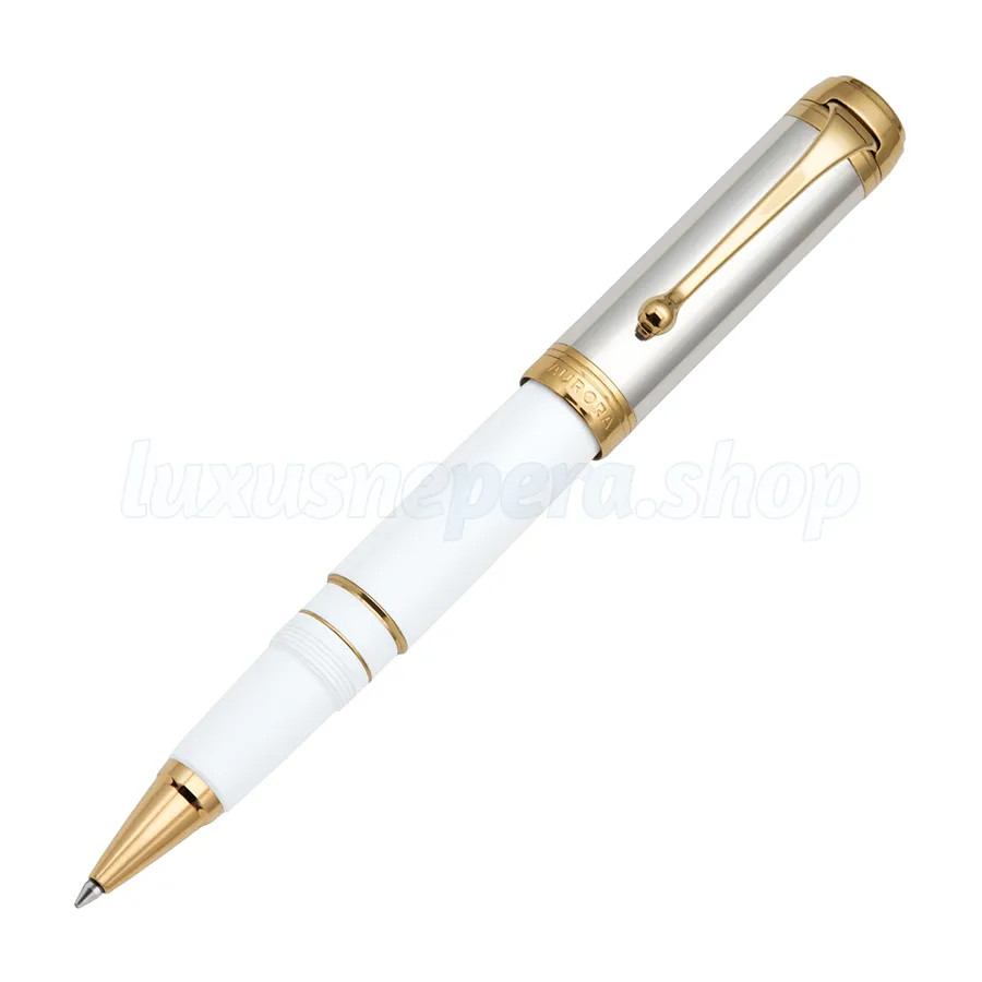 Roller with solid sterling silver 925‰ cap and barrel in white resin. Gold trims.