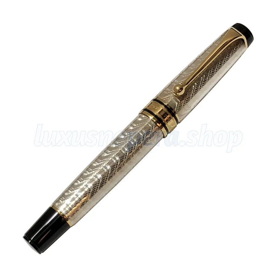 Fountain pen. Solid silver 925 cap and barrel, gold plated trims, engraving. 18K solid gold nib.