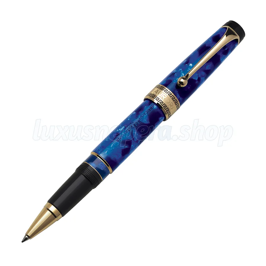 Roller with cap and barrel in blue auroloide. Gold trims.