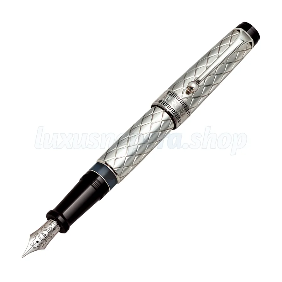 Fountain pen with 18kt. solid gold nib, rhodium-treated. Cap and barrel in sterling silver 925‰, with “Riflessi” guilloché. Chrome trims.