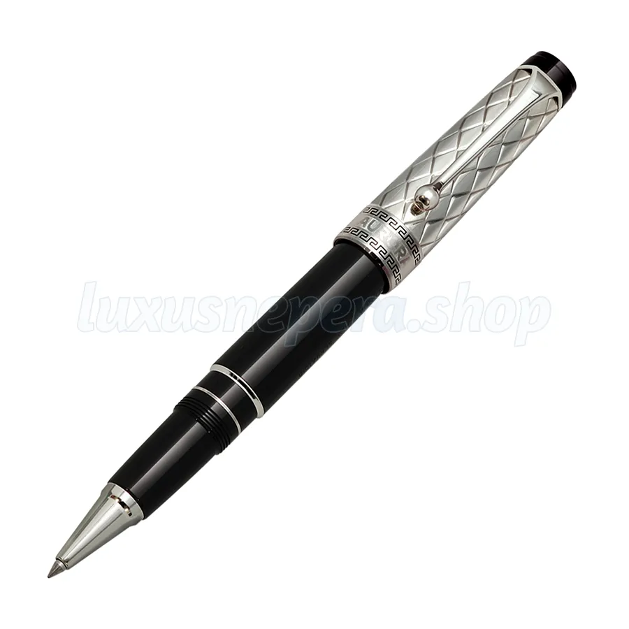 Roller with cap in sterling silver 925‰, with “Riflessi” guilloché and barrel in black resin. Chrome trims.
